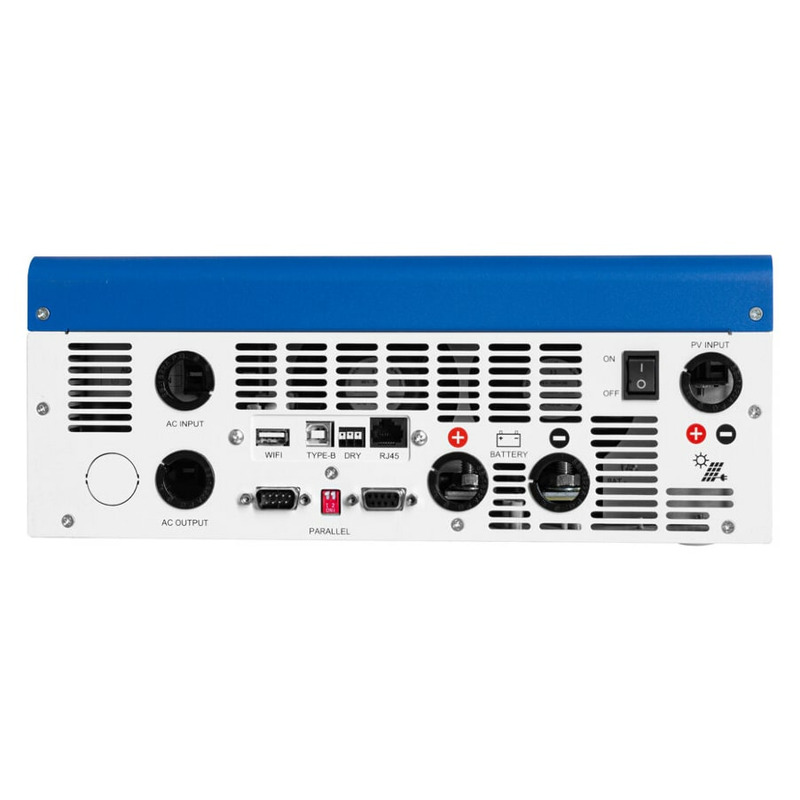 - Имеет встроенный высокоэффективный MPPT HV контроллер для зарядки от солнца (100 А, макс. 6000 Вт)
